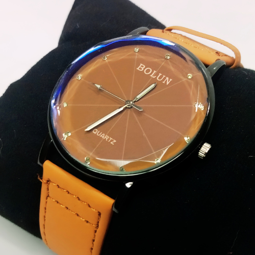 Stylish Watch For Men With Brown Dial and Leather Strap With Box
